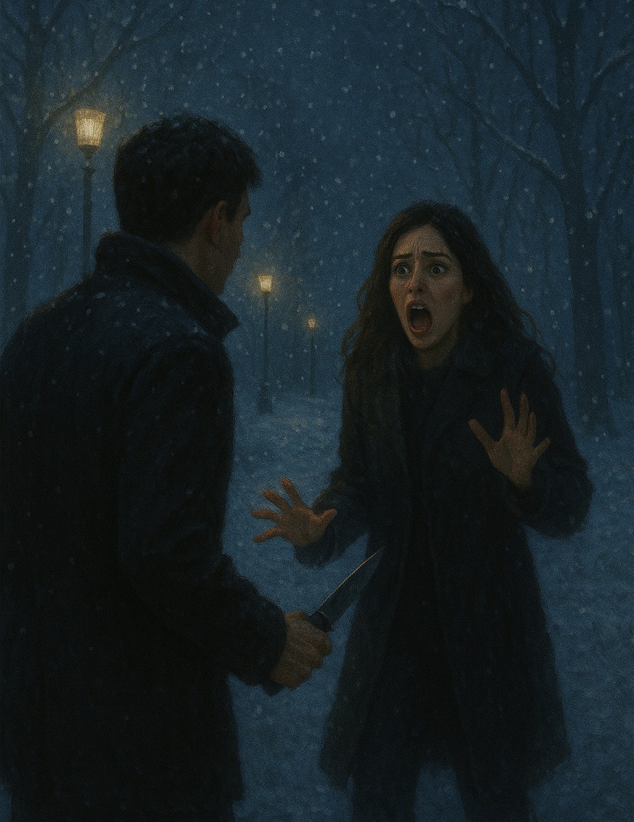 Они появились в парке, как всегда, смеясь и толкая друг друга. Снег ещё не успел растаять, воздух был острым и холодным. Он вышел из машины, пошёл за ними, сжимая рукоять ножа в кармане куртки.