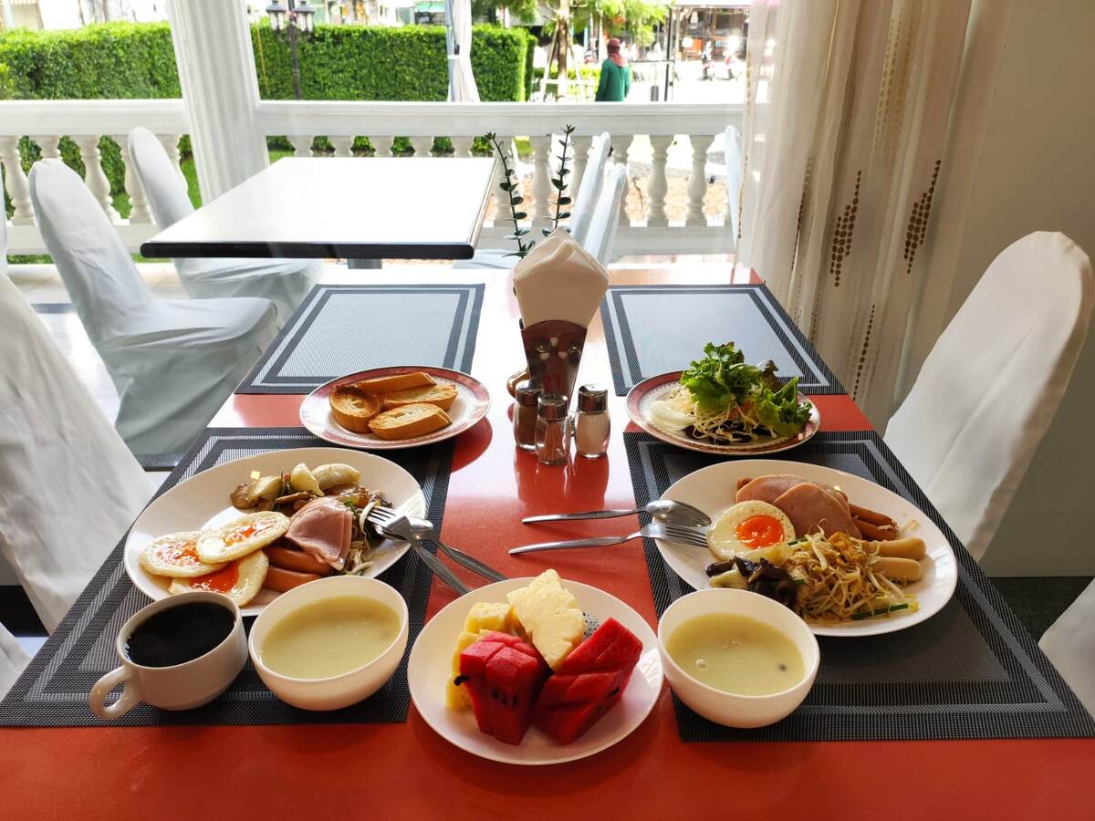 Первый день отдыха начался с плотного завтрака. Завтрак у нас включен в тур. Рис, лапша, овощи, яйца, фрукты, супчики-пюре, сосиски... Сладостей нет. Только два вида повидла. После завтрака отправились на пляж. Тот, который рядом с нашим отелем в центре города. Море теплое. Но вот очень уж много катеров и скутеров. И ещё нет особо деревьев, в тени которых можно спрятаться от солнце. Мы нашли одно раскидистое дерево, под которым спали не только местных жителей и два бездомных пёсика. Мужчины оказались торговцами травкой. Когда они начали просыпаться, то каждый считал своим долгом предложить нам покурить коноплю. Мы с мужем купались в рубашках, но все равно умудрились подгореть, когда переодевались в сухую одежду. Обед был японским: рамены и гедзы. После моря и обеда мы зашли в бассейн нашего отеля и поплавали ещё там. Ужинали на ночном рынке. Он рядом с нашим отелем. Также рядом с нашим отелем находится торговый центр Фестиваль. Второй по величине в Паттайе. Прогулялись по нему