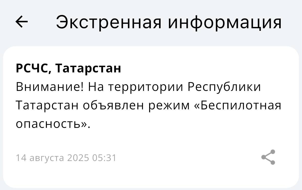 С 5:30 утра действует режим беспилотной опасности. 🌟 Tatarstan News