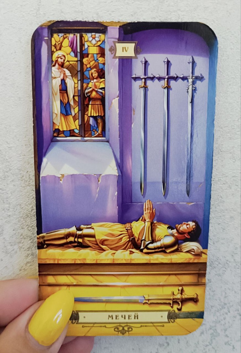 🃏Карта дня четверг 14.08.2025 4 Мечей Сегодня не время для активных действий. Порой белка должна выпасть из колеса, чтобы отдохнуть, набраться сил, поразмышлять о будущем. В сегодняшнем дне будет больше покоя и тишины. Отбросьте тревогу, возьмите паузу, подольше понежьтесь утром в кровати, больше отдыхайте. Сегодня день подходит для расслабления, а не для принятия важных решений. Позаботьтесь о себе, сделайте паузу и восстановите равновесие.
