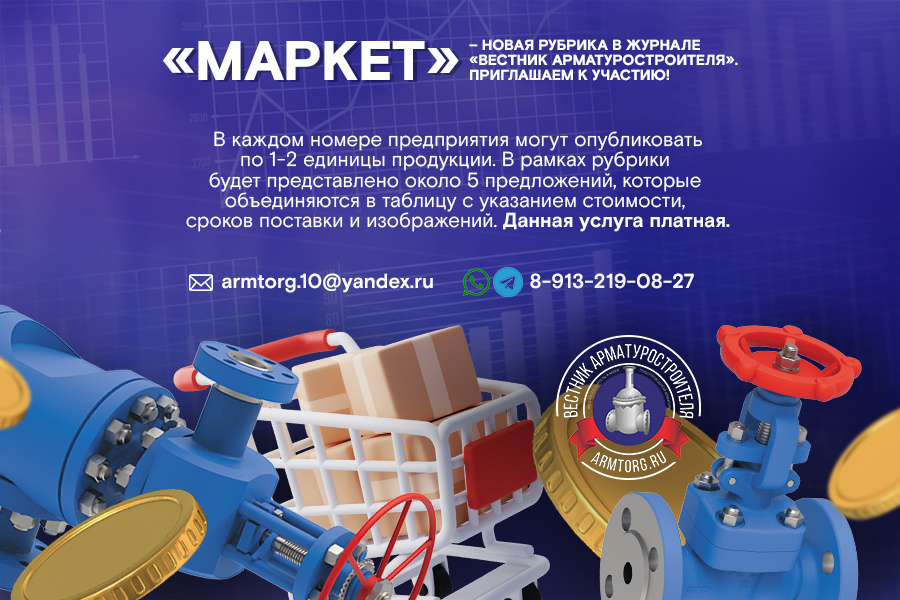 Уважаемые коллеги и партнеры! Медиагруппа ARMTORG запускает новую рубрику в журнале «Вестник арматуростроителя» - «Маркет»!