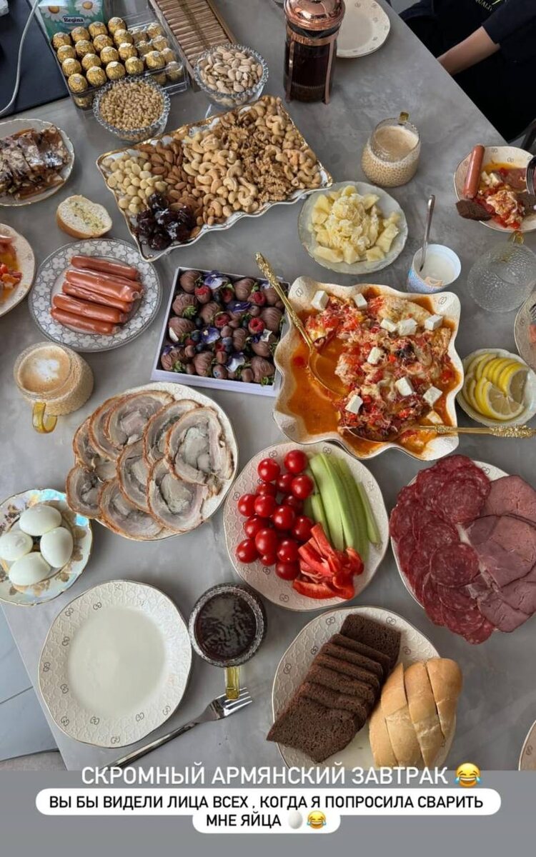 Скромный армянский завтрак похудевшей Гоар Аветисян. Только яйца сварить забыли.