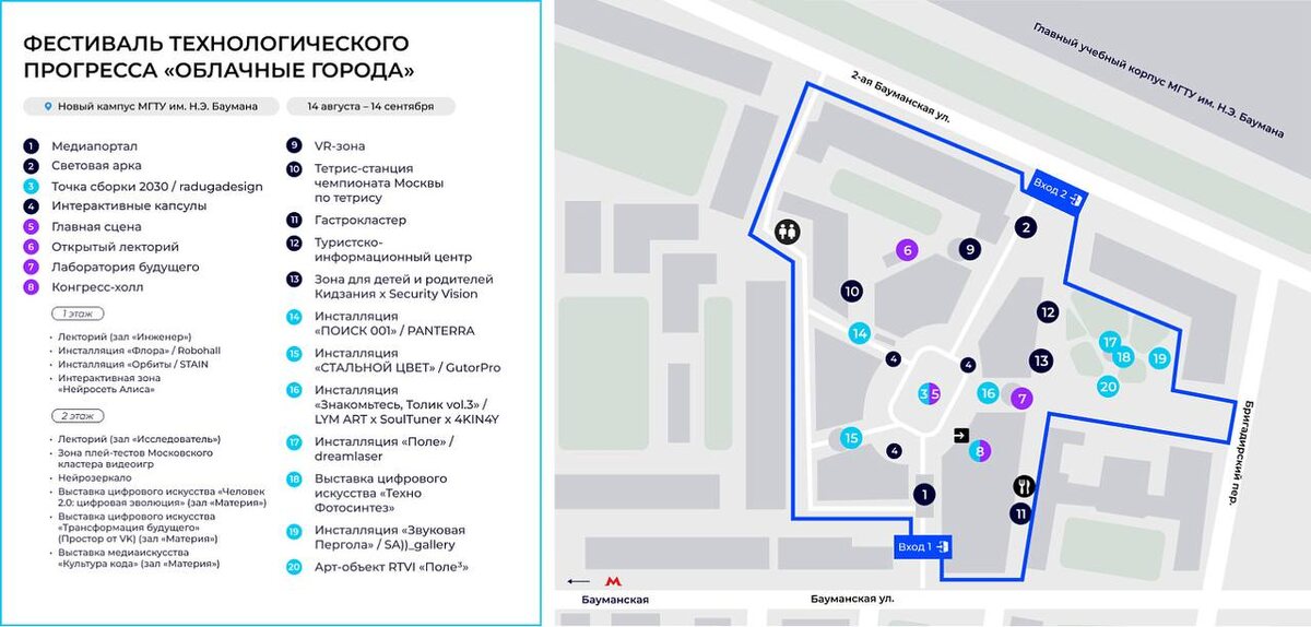 Фестиваль технологического прогресса «Облачные города» 400+ экспертов из сферы технологий и науки 3 тематических трека об инновациях 10+ интерактивных инсталляций и арт-объектов К участию приглашены ведущие архитекторы, ученые, инженеры, программисты и предприниматели. У вас будет возможность получить практические навыки в креативных и технологических направлениях. Подробная программа на каждый день фестиваля. 💵 бесплатно, по регистрации (нужно выбрать дату и мероприятие) 🗓 14 августа — 14 сентября 📍Новый кампус МГТУ им. Н. Э. Баумана #бесплатно #фестиваль #лекция