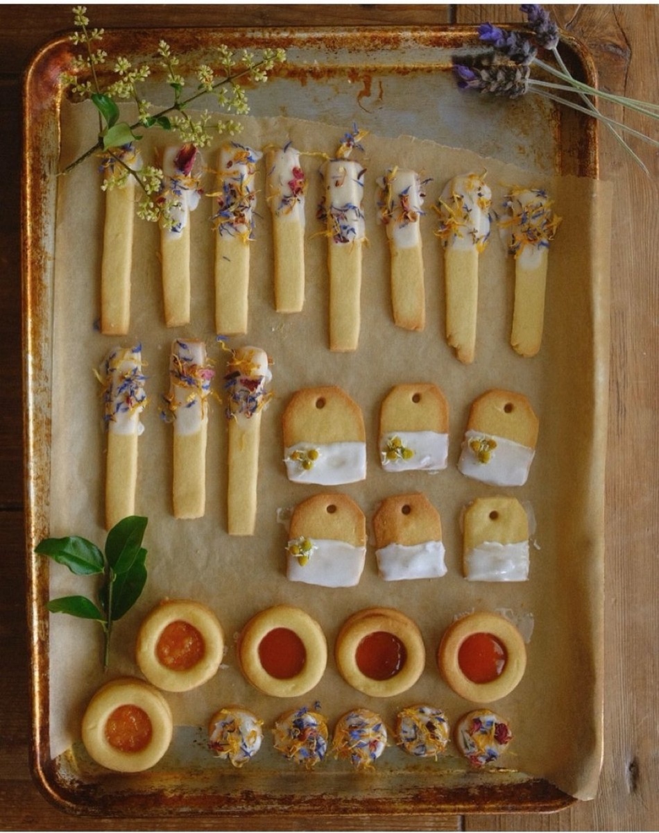 "Команда As ever проявляет творческий подход на кухне, используя нашу смесь для песочного печенья, цветочную посыпку и восхитительные фруктовые пасты. Идеально подходит для чаепития... или любого другого времени".