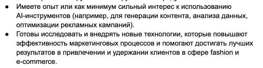 В ответ на пост Только утром составляла вакансию на маркетолога и после этого, просматривая новостные заголовки, наткнувшись на эту, очень сильно задумалась. Мысль 1: в РФ такие интересные новые законы, которые очень сильно ограничивают возможности для маркетинга. Мысль 2: Лично у меня работает так, что когда меня ограничивают, я начинаю просто Х10 генерировать новые неочевидные решения. Мысль 3: Очевидно, что из первых двух пунктов следуюет, что мы с вами заходим в эпоху НЕОЧЕВИДНЫХ маркетинговых решений, которые даже представить себе не можем. Мысль 4: Что-то мне подсказывает, что эти решения будут как-то связаны с AI (ну не с дисковым же телефоном). Мысль 5: Если в компанию на здесь и сейчас нужен крутой маркетолог, то найм его лежит не в области денег. Ибо деньгами и ЗП сейчас не закрыть дефицит рекламных каналов. И даже не в его предыдущем опыте. Мысль 6: Гипотеза: значит нам нужно искать таланты, которые: а) Готовы исследовать и внедрять новые технологии б) Брать тех, кто и