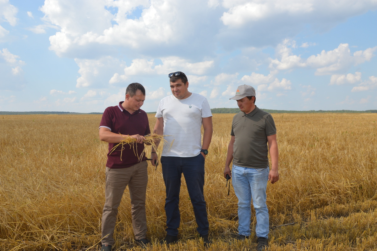 и приступили к сбору ячменя, урожайность которого составляет 43 центнера с гектара.
