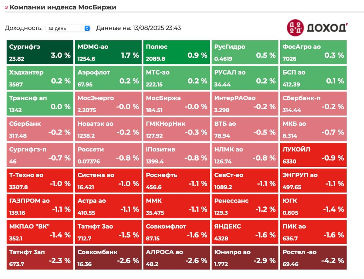 РФ рынок: что нас ждет сегодня В среду индекс мосбиржи упал на 0,6% до 2957 пунктов, рынок пролили в последний час торгов почти не процент. Юань упал на 0,1% до 11,0565ю Нефть упала еще на 1% до $65,6. Трамп: новый раунд коммуникации Перед встречей с Путиным Трамп встретился с ЕС и Украиной. Украина готова обсуждать территориальные вопросы, но лишь на трехсторонних переговорах. Трамп поддержал представление гарантий безопасностей вне НАТО. Трамп в пятницу будет обсуждать перемирие. Ну и опять ЕС с Украиной просили ввести санкции, по факту ничего важного не сказали. Их корёжит, что Трамп и РФ могут договориться без их участия. Не видно, чтобы Трамп как-то поменял мнение в моменте. Он считает, что предлагает Украине наилучшую сделку из возможных, ну и вообще у вас ребята фронт сыпятся не в вашем положении глазки строить - судя по всему на основе такой философии он и принимает решение. Инфляция: овощи помогают За последнюю неделю цены упали на 0,08%. Прежде всего падают в цене овощи.