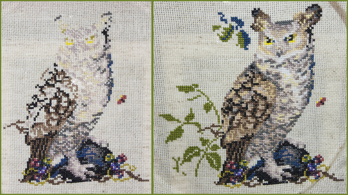 И всё же я успела отшить норму к 20-му числу. Да, я хотела сдвинуть даты отчётов по игре, но работа и вышивка вещи несовместимые)) Хорошо хоть к обычной дате успела. Встречайте 1571хх на Сове: Сама Сова полностью отшита (бэк не считаем) и добавились листочки. С зеленым цветом картинка стала выглядеть повеселее. В раскладе Средний участники пока те же: А сам расклад Средний сегодня такой: Похоже команда Буби решила обогнать по отшиву команду Черви. Средняя карта - Валет Буби. И норма 1200хх, и снова Сова)) До встречи)