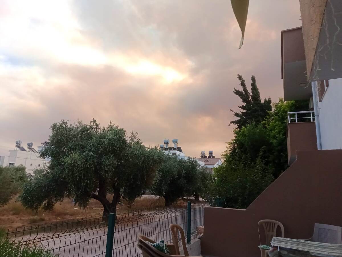 Горит лес. Пожары вспыхивают один за другим. Но не в прямой видимости. Вчера полыхало за горой. Жара. Сидим, преимущественно, дома. Вчера вышла на улицу. Сначала не поняла, что происходит. Тучи на небе? Это необычно. Потому что в июле-августе пасмурных дней здесь не бывает. Но небо затянуло. Потом обошла вокруг дома и поняла, что опять сильный пожар. Пошла на крышу дома посмотреть, что делается. Дым немного сдувало в сторону от нас в море. Вот и солнышко затянуло. В центре кадра светлое пятно - это солнце. Опять весь день летали вертолеты, но не над нами, а к западу. К вечеру, вроде, стало меньше дыма. Сегодня утром пошли на море с Егором. Он соскучился по плаванью. Но на пляж можно выходить только рано утром. После девяти уже очень жарко. Вся береговая линия была засыпана тонкой полосой гари. В море плавает горелая хвоя. Это при том, что пожар примерно в 12 киллометрах от Ташуджу. Мы сначала даже хотели отказаться от купания. Но потом оценили обстановку и решили, что просто зай