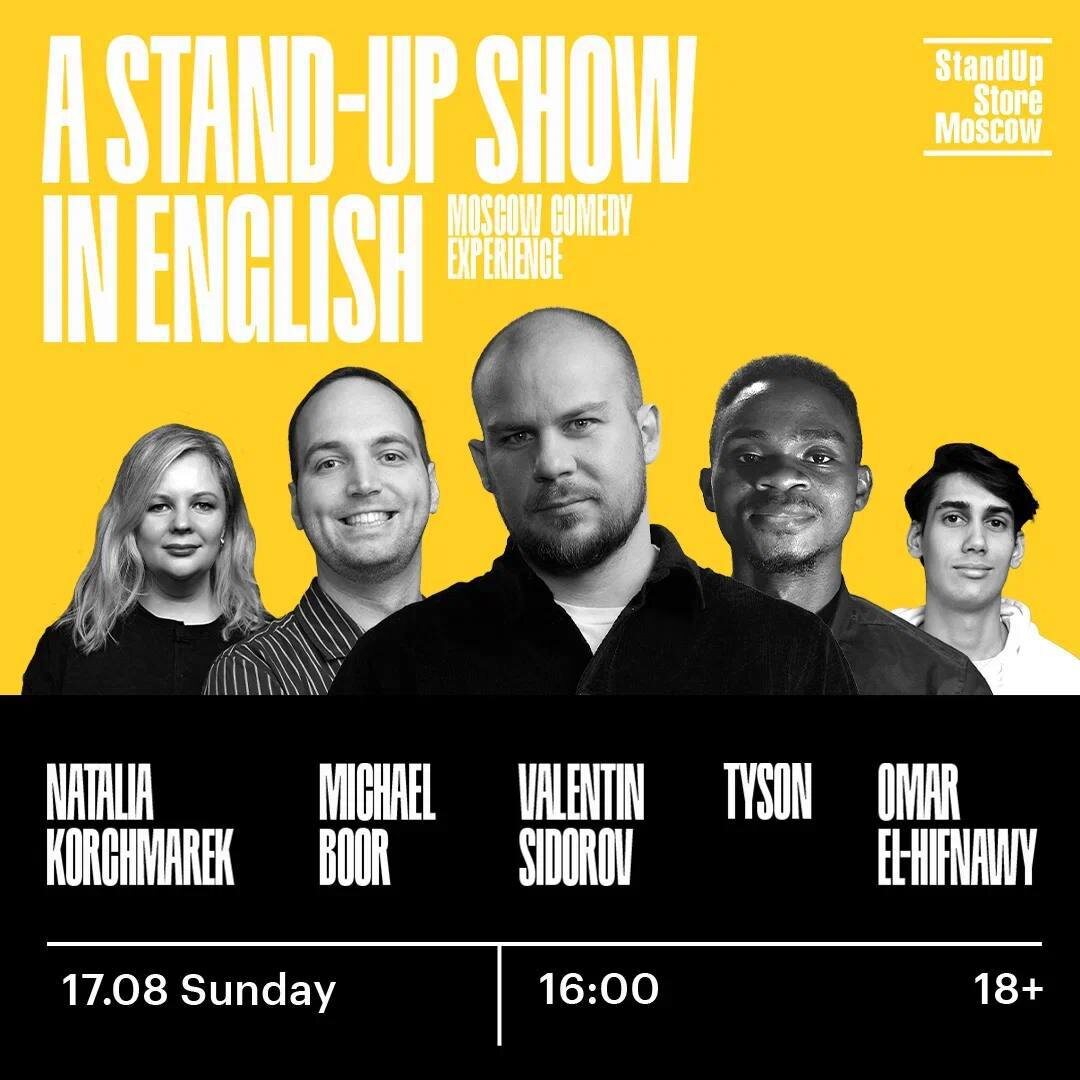 Just a quick reminder… this Sunday afternoon is your chance to “experience” our monthly Moscow Comedy Experience at StandUp Store, where we feature a rotating cast of the very best performers that the English stand up scene has to offer! Come out to see comedians representing Zambia 🛖, America 🤠, and Egypt 🐪 plus TV-famous comic Valentin Sidorov 🎥🤩 StandUp Store Moscow 🕓Time: 16:00 🗺 Map: Petrovka 21c1 🎫Entrance: 1000 rub 🔗Buy tickets here