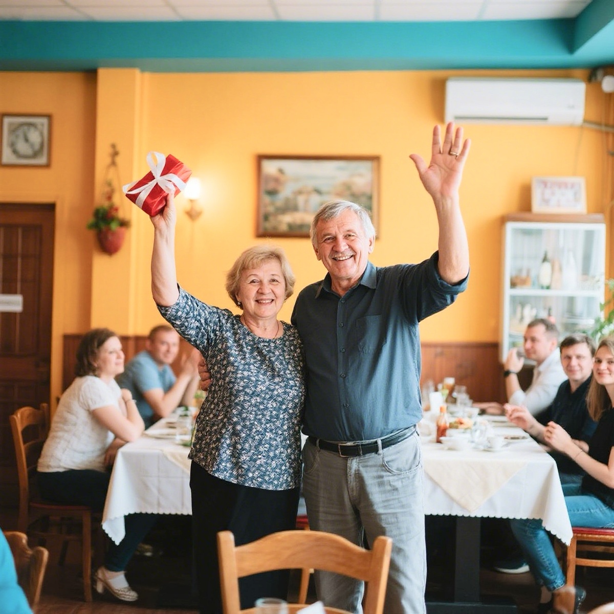 Через полчаса, когда уже подали салаты, в зал торжественно вошли двое. Зинаида Петровна — невысокая женщина лет шестидесяти с тщательно уложенными волосами и в ярко-синем платье, и Владимир Сергеевич — худощавый мужчина в костюме явно большего размера.
