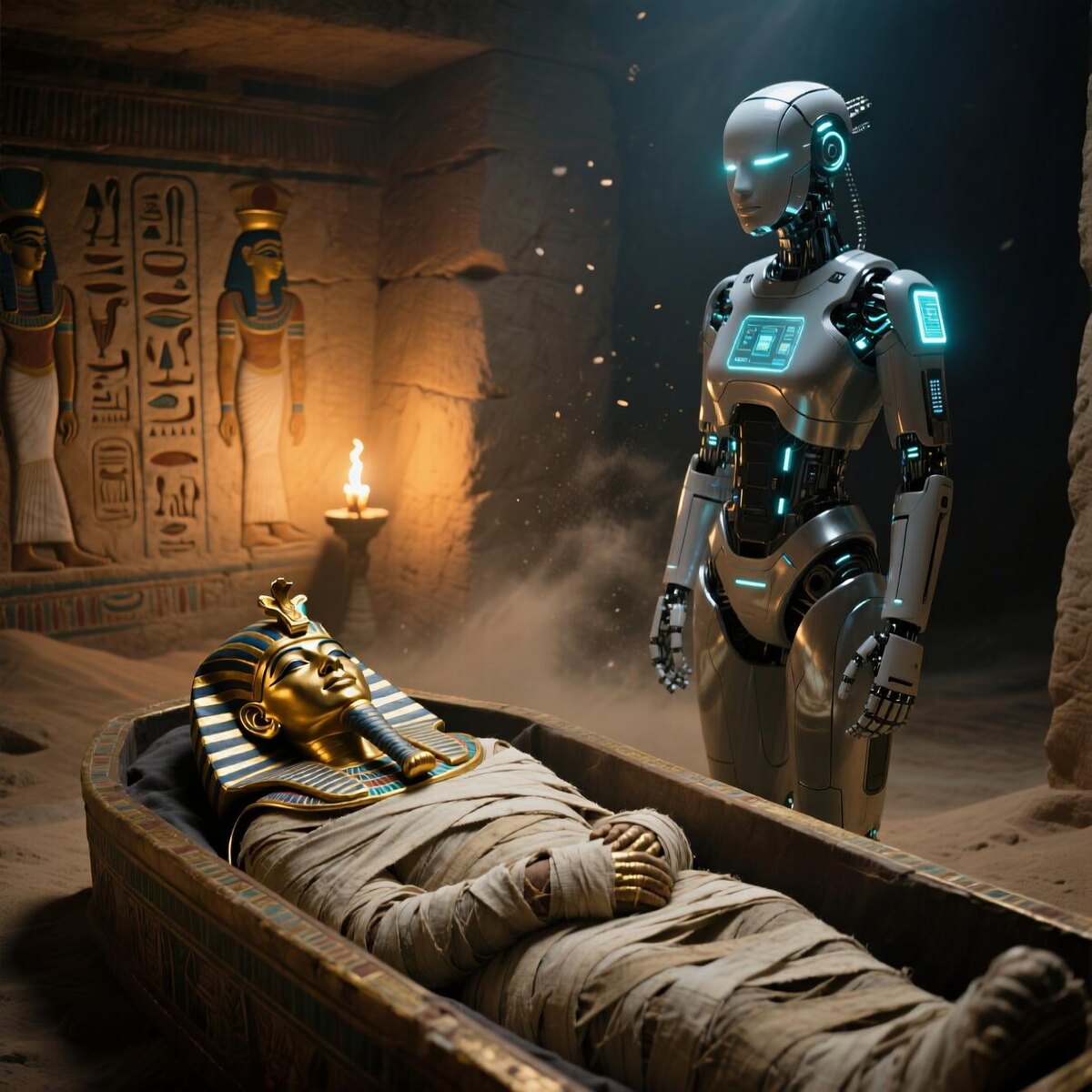 Пока мы восхищаемся ChatGPT и нейросетями, давайте оглянемся назад. Древние египтяне были, пожалуй, первыми венчурными капиталистами в сфере life-extension. Их MVP (Minimum Viable Product)? Мумия. Цель – сохранить физический сосуд для вечного странствия Ка (души). Титанический труд, тонны бальзамирующих средств, целая индустрия саркофагов и гробниц – все ради того, чтобы смерть была лишь дверью, а не концом. Это был их способ сказать: «Нет, мы не уйдем просто так».