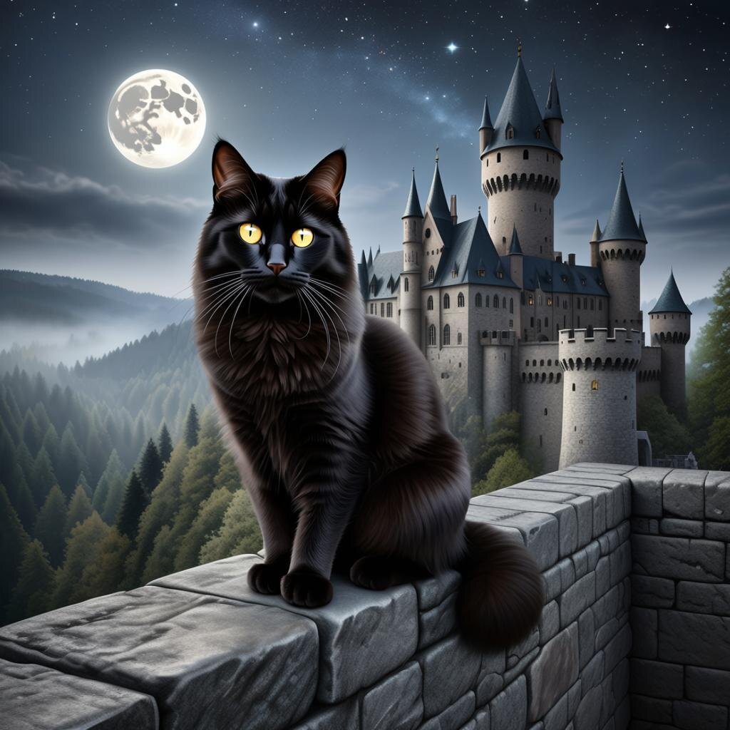 Давным-давно, когда звезды сияли особенно ярко, а деревья возвышались до небес, в замке на берегу прекрасного озера Серебристого Огня жил благородный король Лоренцо со своей дочерью-принцессой Элиной. Все знали, что Элина обладала добрым и чистым сердцем, а ее улыбка могла согреть душу любого человека. Но счастье народа омрачала давняя угроза: согласно древнему пророчеству, в одну из ночей полнолуния явится черный кот, обладающий магией, способной погубить их всех. Когда в очередной раз на небе взошла полная луна, вся округа собралась под стенами замка, наполненного тревогой. Принцесса Элина, стоявшая на высокой башне, увидела выходящую из тени фигурку. Это оказался стройный черный кот с золотистыми глазами. К удивлению жителей, кот подошел к ней и заговорил мягким голосом: