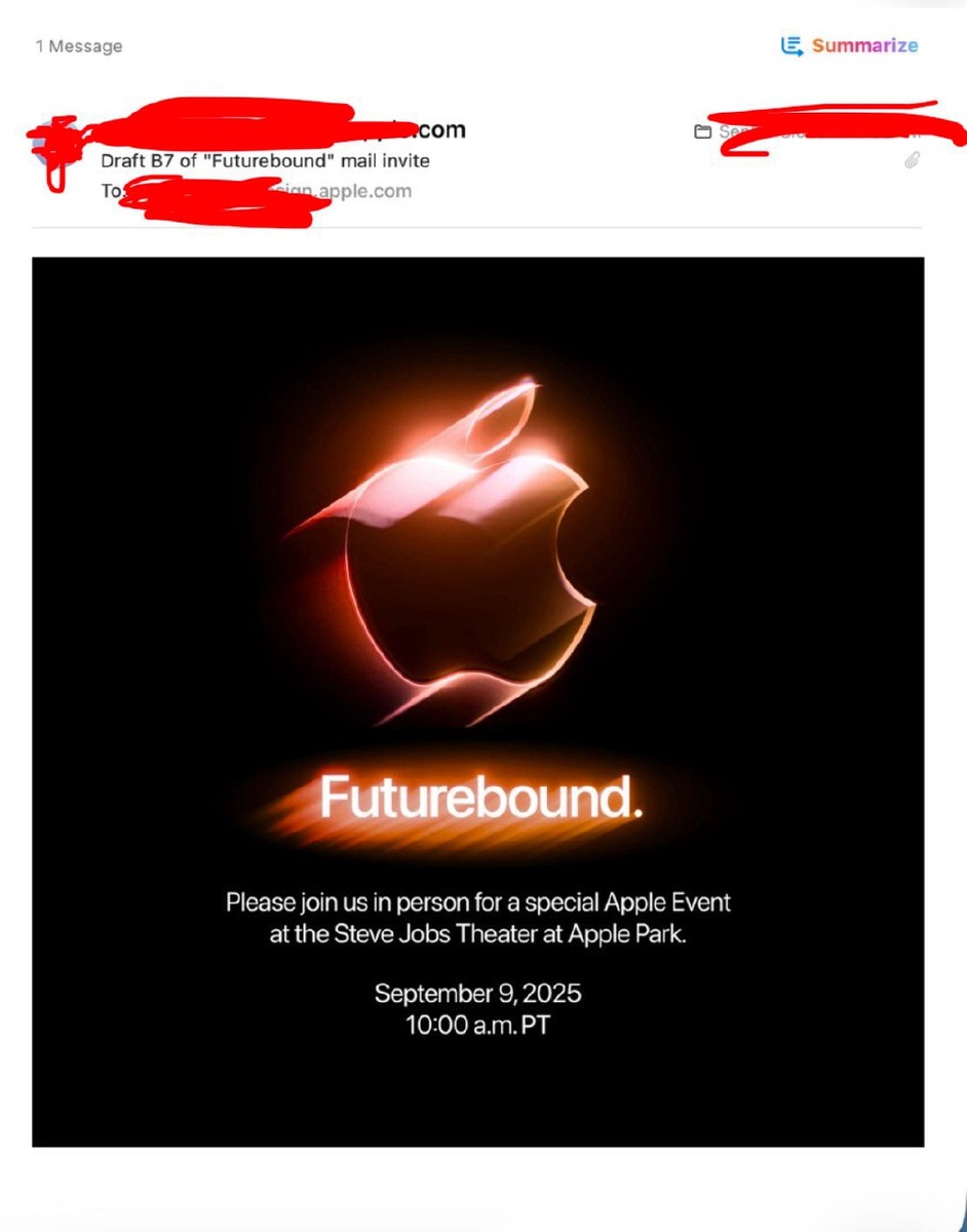 Это неточно, но говорят, что так будет выглядеть приглашение для журналистов и блогеров на сентябрьскую презентацию Apple. Пока все ожидают, что она состоится во вторник 9 числа. Предположительно, на ней будут представлены новое поколение iPhone, включая «тонкую» модель iPhone Air, часы и что-то еще. @fixed