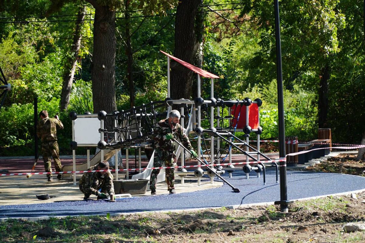🔻 В Крымске продолжается строительство парка по нацпроекту «Инфраструктура для жизни». В парке на улице Рядновой укладывают покрытия на детской площадке и площадке с уличными тренажерами. На спортивной площадке уже уложили новое покрытие.