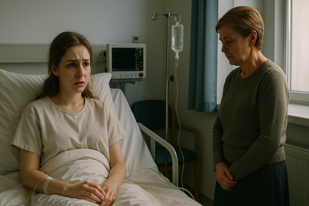 Лена очнулась в больнице. Белые стены, запах хлорки, мама сидит рядом с заплаканными глазами.
