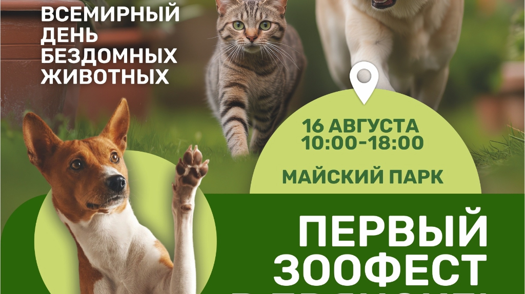 16 августа отмечается Всемирный день защиты бездомных животных. В честь этого события в Брянске в Майском парке пройдет большой «Зоофест». На фестивале будут представлены: брянские зооволонтерские организации, кинологи, артисты и другие участники. Организатором выступает команда зооволонтеров «Гектор» из Брянска. Организаторы поделились информацией о программе: Место проведения: г. Брянск, Бежицкий район, ул. Ульянова, парк «Майский». Как добраться: ближайшая остановка общественного транспорта – «Почта». Время проведения: с 10:00 до 18:00. 0+ В Майском парке Брянска пройдет «Зоофест»