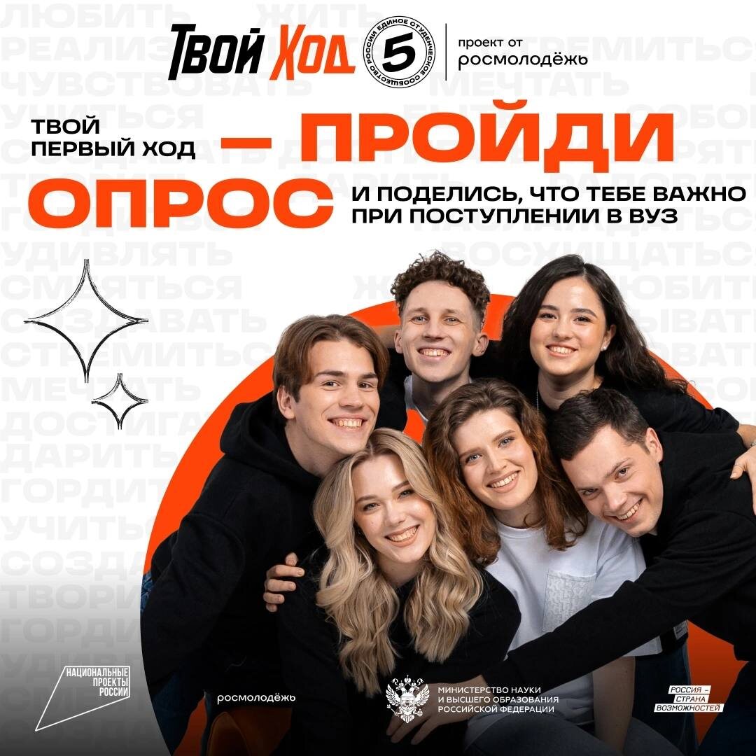 Первокурсник, этот пост для тебя! ✨ Всероссийский студенческие проект «Твой Ход» с 20 июня по 15 августа запускает спецпроект «Твой первый Ход» — это шанс узнать о возможностях крупнейшего студенческого сообщества страны и о том, как проект может помочь тебе на старте студенческой жизни 🔥 Поделись своими ожиданиями от обучения в опросе Важную роль сыграют региональные и вузовские команды проекта «Твой Ход», которые будут помогать на местах абитуриентам узнать больше о возможностях, которые их ждут 👩💼 #ТвойХод #Росмолодёжь #Молодежка_ИРНИТУ #иркутский_политех