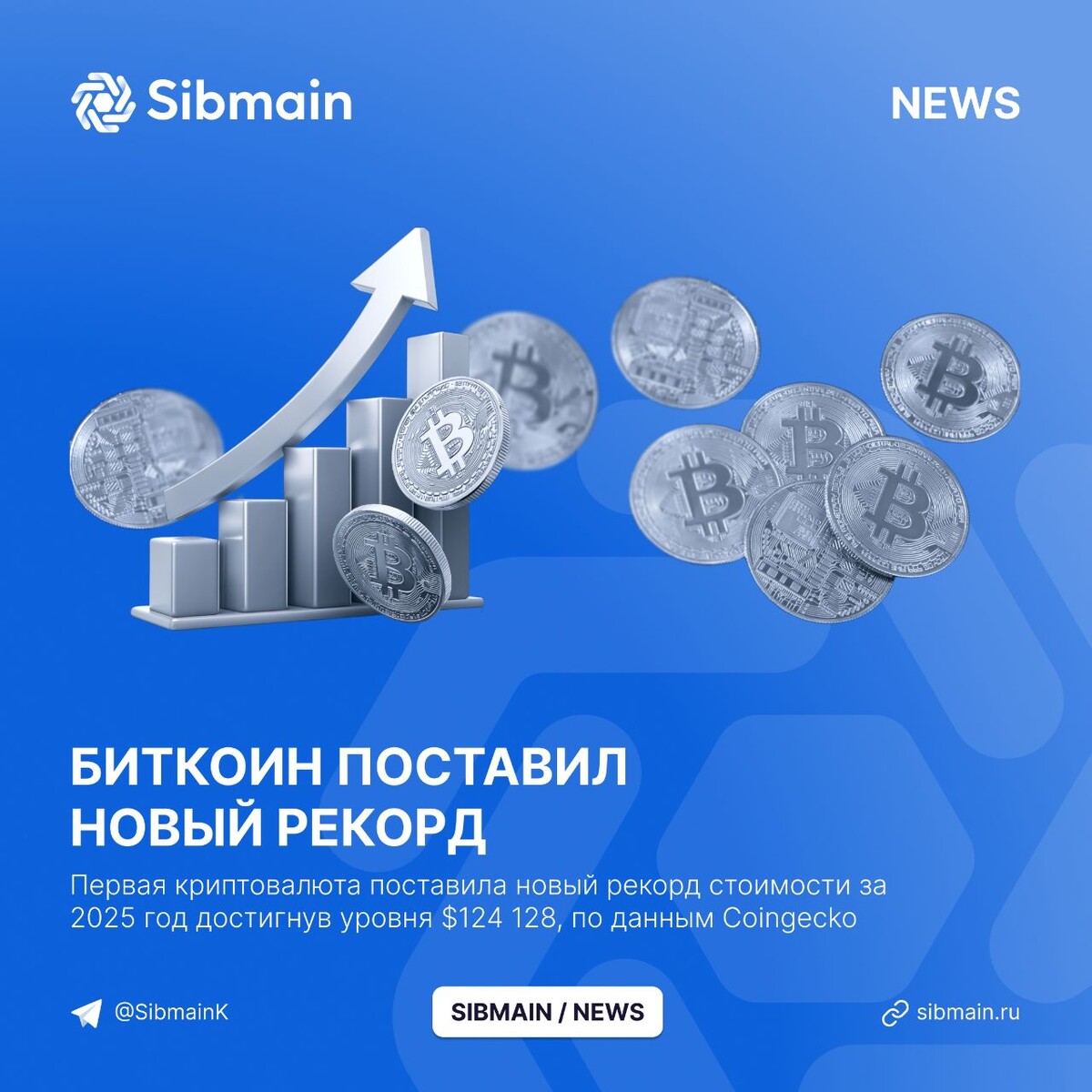 📰📰📰📰 ➡️Биткоин поставил новый рекорд Первая криптовалюта поставила новый рекорд стоимости за 2025 год достигнув уровня $124 128, по данным Coingecko. Достижения биткоина: ⏺Максимум стоимости - $124 128; ⏺Капитализация - $2,44 трлн; ⏺Годовой рост - 102% 📍Биткоин остается одним из самых доходных активов в мире, рекордный рост стоимости показывает увеличение долгосрочного спроса со стороны инвесторов и компаний
