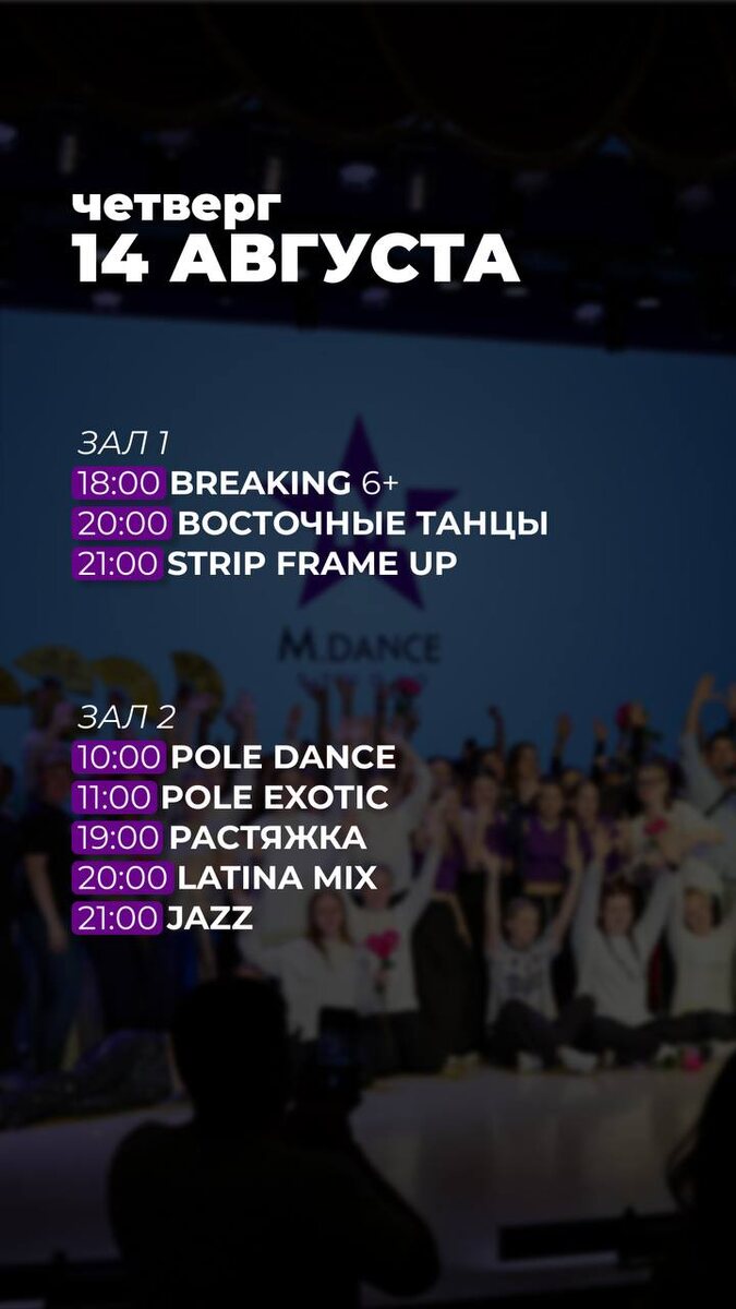Всем классного танцевального дня!💜 ✅ Записаться в WhatsApp ✅ Записаться в Telegram ✅ Группа в ВК ✅ Канал в Telegram ✅ Наш сайт 💌Наше полное расписание https://m-odintsovo.ru/raspisanie/ 📍ул. Маршала Жукова 32 Мы на Яндекс Картах Запись по телефонам: 📲 +79955003021 ☎️ +74994040321 Обсудить, задать вопрос, или внести предложение можно в нашем 👉🏻 чат