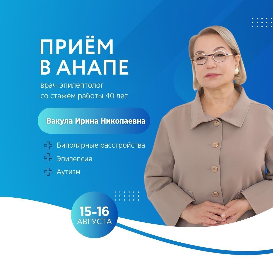 15-16 августа в ЛДЦ ДИЛУЧ ведёт приём кандидат медицинских наук в области психиатрии, специалист из Краснодара, Вакула Ирина Николаевна. Врач занимается диагностикой и лечением психических, психологических нарушений и эпилепсии у детей подростков и взрослых! В сферу компетенции входят: — задержки речевого и психологического развития; — расстройства аутистического спектра (РАС) различного генеза; — СДВГ; — эмоциональные и поведенческие нарушения (в детском и подростковом возрасте) — патологический пубертатный криз; — страхи, тревога, депрессия — аффективные нарушения у детей и взрослых; — ОКР; — когнитивные и эмоциональные нарушения у лиц пожилого возраста; — лёгкая и умеренная деменция (сосудистая, атеросклеротическая, смешанная); — психозы у детей и взрослых различного генеза. Записаться на приём или получить консультацию 📲 88003011296