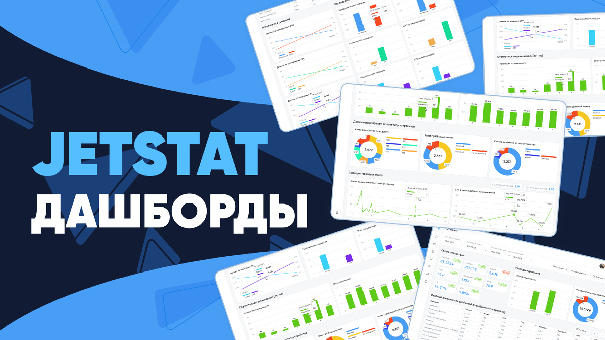 Мы знаем, как утомительно собирать отчёты вручную: выгрузки, таблицы, формулы, бесконечные правки. Каждую неделю — одно и то же. А потом еще нужно объяснять цифры, сравнивать периоды, фильтровать по кампаниям и каналам… Всё это занимает время и отнимает ресурсы. Поэтому мы в JetStat сделали то, чего самим давно не хватало: готовые шаблоны дашбордов, которые можно использовать со своими данными. Помогаем с подключением и настройкой — всё заработает без лишней возни. Наши шаблоны — это не просто графики. Это полноценный инструмент, который сразу закрывает две задачи: регулярную отчётность и принятие управленческих, а также маркетинговых решений. Вам не нужно думать, как свести данные или что добавить в отчёт. Уже всё есть: расходы, показы, клики, визиты, регистрации, отказы, CPA, CTR, CPC, CR — сгруппировано и логично представлено. Вы подключаете данные к нашему отчету, и за считанные минуты получаете готовый интерактивный дашборд. Без аналитиков, без Excel, без ожидания. Работает на пл