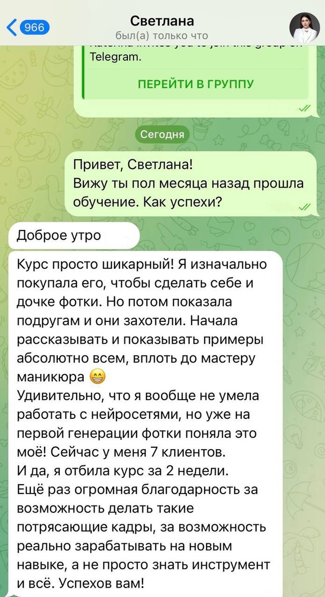 📸 Ученица после курса заработала первые 50 000₽ на нейрофотосессиях