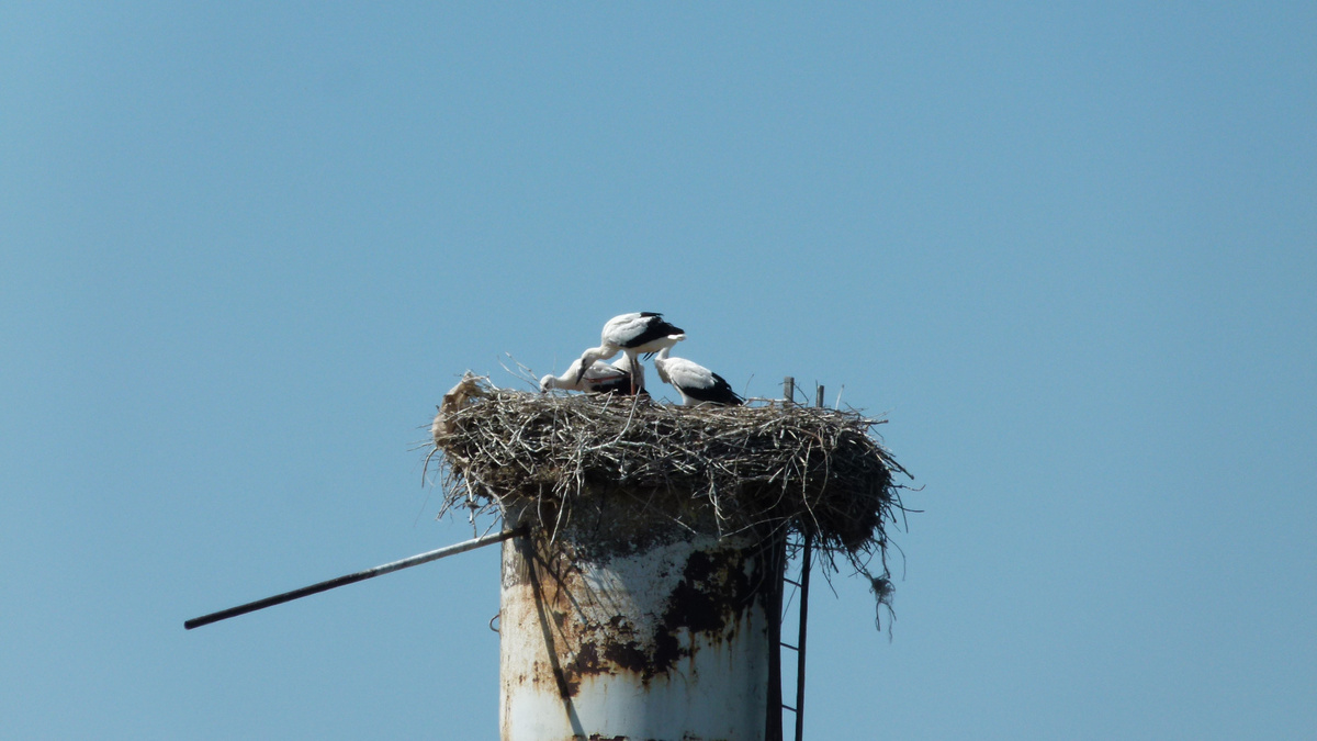 В Волгоградской области птенцы краснокнижного белого аиста готовятся к первой зимовке
