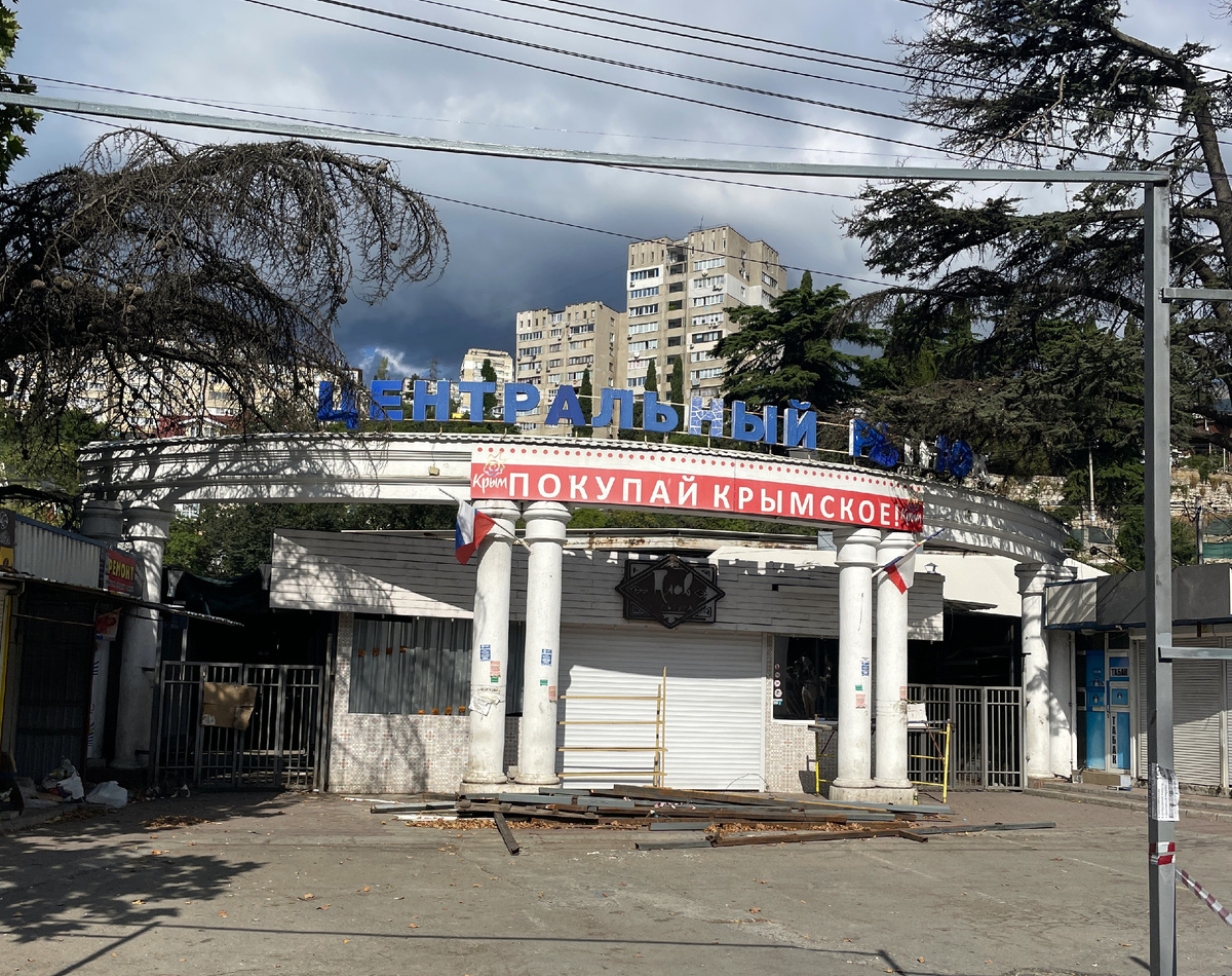 Добрый день дорогие друзья! Собрались мы на рынок Ялты и приехав на место рынка не обнаружили. Как такое могло случиться? Начали спрашивать у местных, ответ один — надо ехать в сторону автовокзала, туда его перенесли, а этот закрыли. Вот дела, Центральный рынок города закрыт. Люди сидят неподалеку со своим товаром.