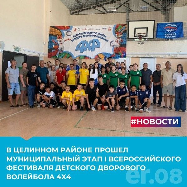 В Целинном районе прошел муниципальный этап I Всероссийского Фестиваля детского дворового волейбола 4x4 12 августа на базе МОКУ «Партизанская СОШ» прошел муниципальный этап I Всероссийского Фестиваля детского дворового волейбола 4x4. В турнире приняло участие 6 команд из Целинного района, которые показали свои навыки и спортивный дух На официальном открытии фестиваля присутствовали Первый заместитель Руководителя Администрации Главы Республики Калмыкия, заместитель Секретаря Калмыцкого Регионального отделения Всероссийской политической партии "Единая Россия" по работе с муниципалитетами, член Президиума Регионального политического совета Калмыцкого Регионального отделения Всероссийской политической партии "Единая Россия", руководитель Калмыцкой федерации волейбола Савар Тарбаев, а также секретарь Целинного местного отделения партии, Глава района Эрдни Опиев. В своем приветственном слове Савар Тарбаев подчеркнул, что главной целью фестиваля, является не только выявить сильнейших, но