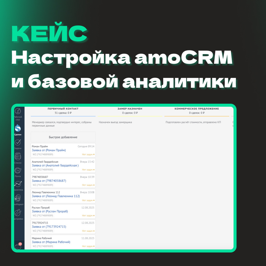 Кейс: Подключение amoCRM с интеграциями и первичной аналитикой