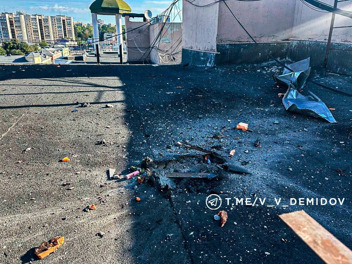 Один из беспилотников, ранее атаковавших Белгород, упал на крышу дома на Народном бульваре, сообщил мэр Валентин Демидов