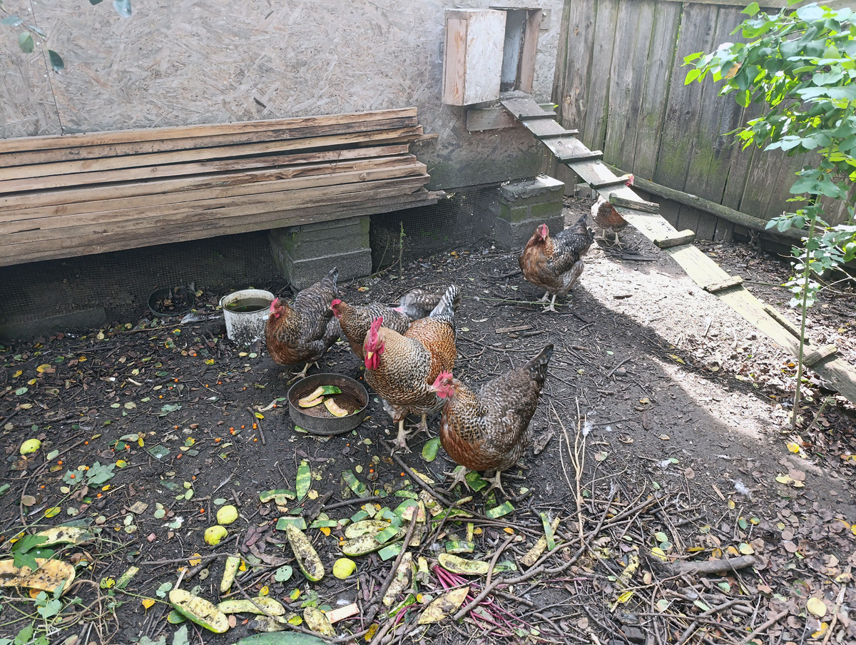 У моих кур есть выгул. Он открытый, поэтому из опасения, что в курятник попадут непрошенные гости, я его на ночь закрываю. А утром они уже ждут, когда я приду и открою им лаз. Дверцу я сделал идеально, она закрывается плотно, но ничего нигде не задевает. Как устроена дверца, да и другие хитрости я рассказал в этой статье: И иногда случается, что дверцу эту захлопывает сильный порыв ветра. Сами открыть ее куры не могут, и ждут моей помощи. Как-то приезжаю с рыбалки, а они вынужденно гуляют. Открыл им дверь, и забыл про это случай. А через несколько дней решил поискать яйца в выгуле. У них бывает – лень идти в курятник, так они яйца прямо в выгуле на землю кладут. Я говорю: «Не донесла»😁. И неожиданно обнаруживаю яйцо в углу забора, под зарослями ирги. Разглядели? Вот и я не сразу увидел. Полез его брать а там ещё 5 штук. Грязные все😁! Принес домой, положил в холодильник, а утром приготовился делать омлет. Я знал, что меня возможно ожидает. Поэтому приготовил 2 ёмкости: одну побольше