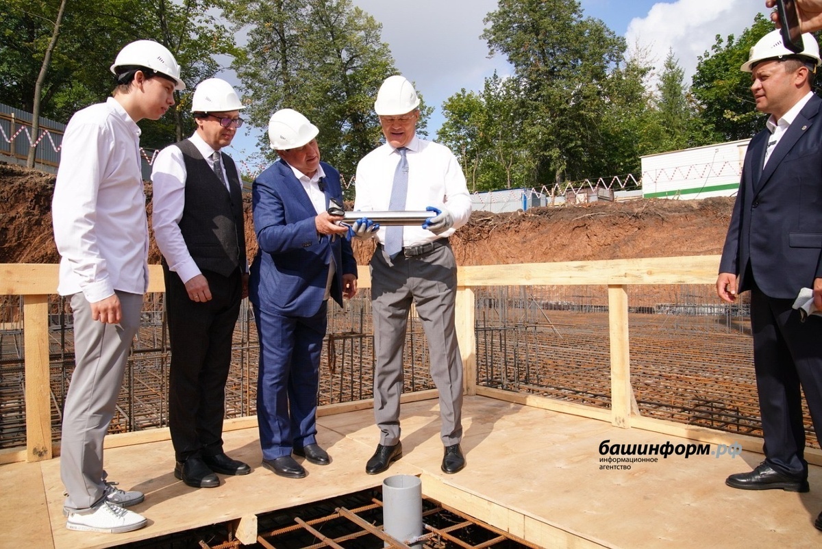 Старт строительству дал Глава республики Радий Хабиров, он принял участие в торжественной церемонии закладки капсулы времени в основание будущего здания лицея, которую потомки должны открыть через 50 лет.