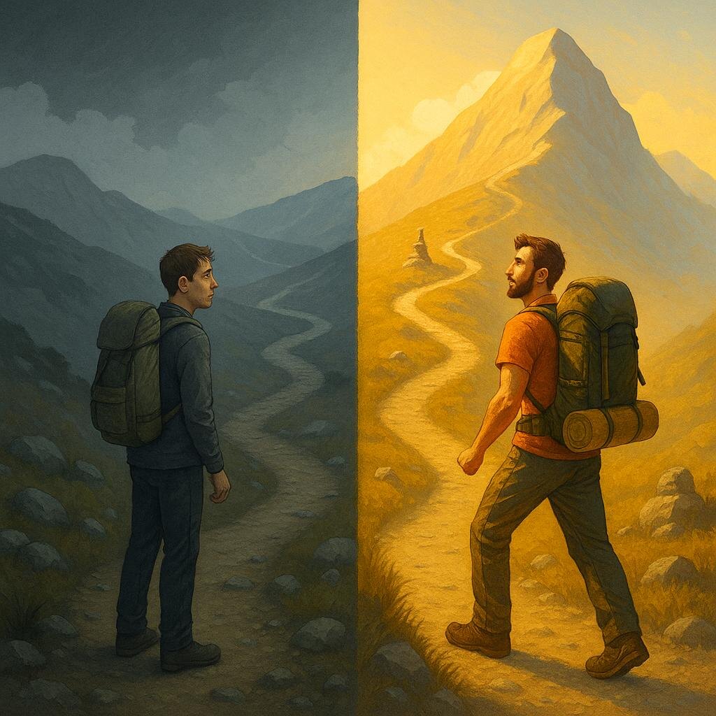 🔄 Каждый шаг меняет тебя. Не только приближает к вершине. (Серия о восхождении к большим целям — пост 4 из 5) Недавно посмотрел на фото годичной давности и не узнал себя. Не только внешне (108→91 кг), а внутренне. Тот человек боялся первой тренировки в зале. Этот — с радостью идёт на 96-ю. 💭 И тогда понял: Цель — это не только пункт назначения. Цель — это машина по производству новой версии себя. 🔥 Парадокс трансформации: Мы ставим цели, чтобы получить что-то. А получаем главное — становимся кем-то другим. 1. Хотели похудеть — стали дисциплинированными. 2. Хотели бизнес — стали решать проблемы людей. 3. Хотели марафон — стали не пить алкоголь. ⚡ Каждый шаг — это не просто действие. Это голосование за новую идентичность. 96 тренировки = 96 раза выбрал здоровье вместо лени Каждый клиент = выбрал служение вместо эгоизма Каждая страница = выбрал творчество вместо потребления 🎯 Три уровня изменений: 1. Навыки (что умеешь) 2. Убеждения (во что веришь) 3. Идентичность (кем с
