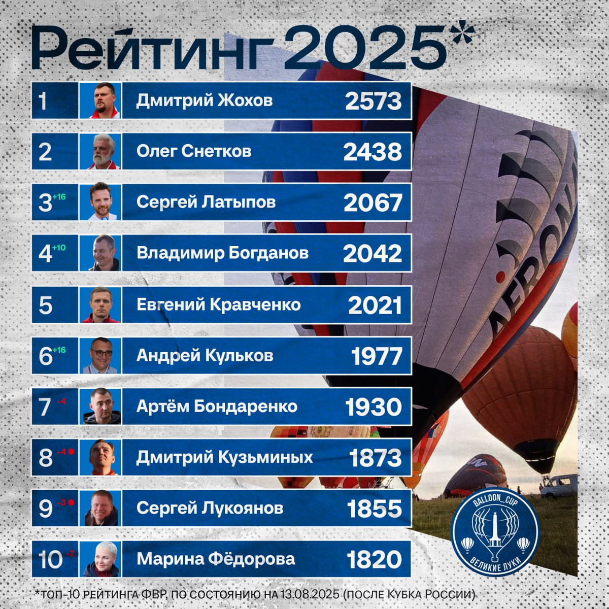 Дмитрий Кузьминых и Сергей Лукоянов не соревновались в Рязани, но сохранили прописку в десятке лучших. Марина Фёдорова, из Нижнего Новгорода, по результатам спортивного сезона 2025 вошла в топ-10 пилотов-спортсменов страны. Единственная из девушек-пилотов в десятке!