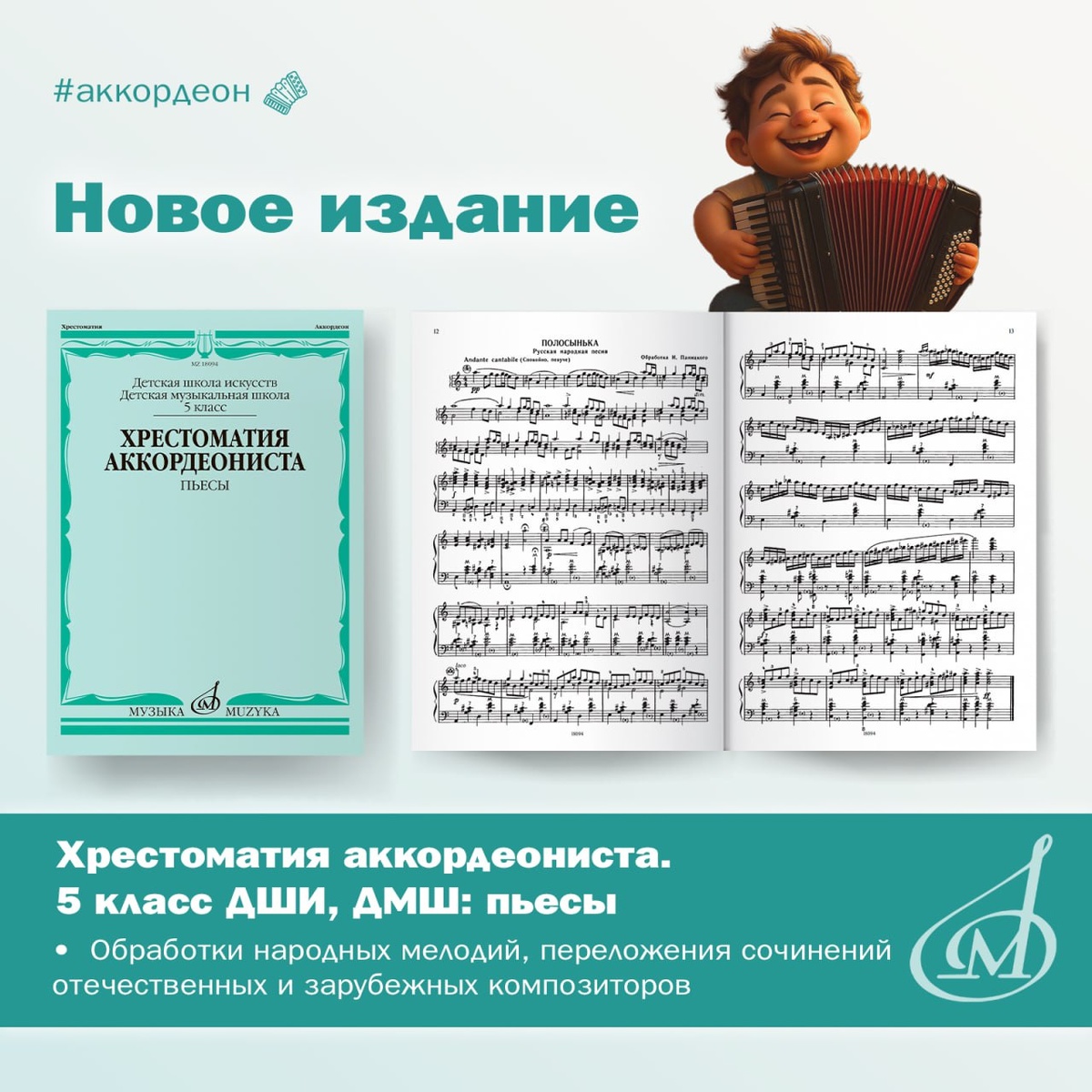 🪗 Новое издание: Хрестоматия аккордеониста, составитель В. Лушников Хрестоматия включает произведения разных стилей и эпох (от классики до современной музыки), способствующие развитию технических и художественных навыков юных аккордеонистов. В сборнике представлены: • Народные мелодии в обработке для аккордеона. • Этюды и оригинальные сочинения, направленные на отработку техники. • Пьесы зарубежных и русских композиторов (в том числе не часто исполняемых: Д. Циполи, З. Жиро, А. Скултэ, Н. Чайкина, Г. Сасько и др.) 📖 Издание структурировано по уровню сложности, автор-составитель подобрал произведения с учетом возрастных особенностей учащихся 5 класса. Пьесы способствуют развитию беглости пальцев, освоению различных штрихов и динамики, пониманию музыкальной формы и стиля. 🔵Составитель сборника Владимир Васильевич Лушников – советский и российский баянист, аккордеонист, педагог и методист, внёсший огромный вклад в развитие народного инструментального исполнительства. Его учебные по