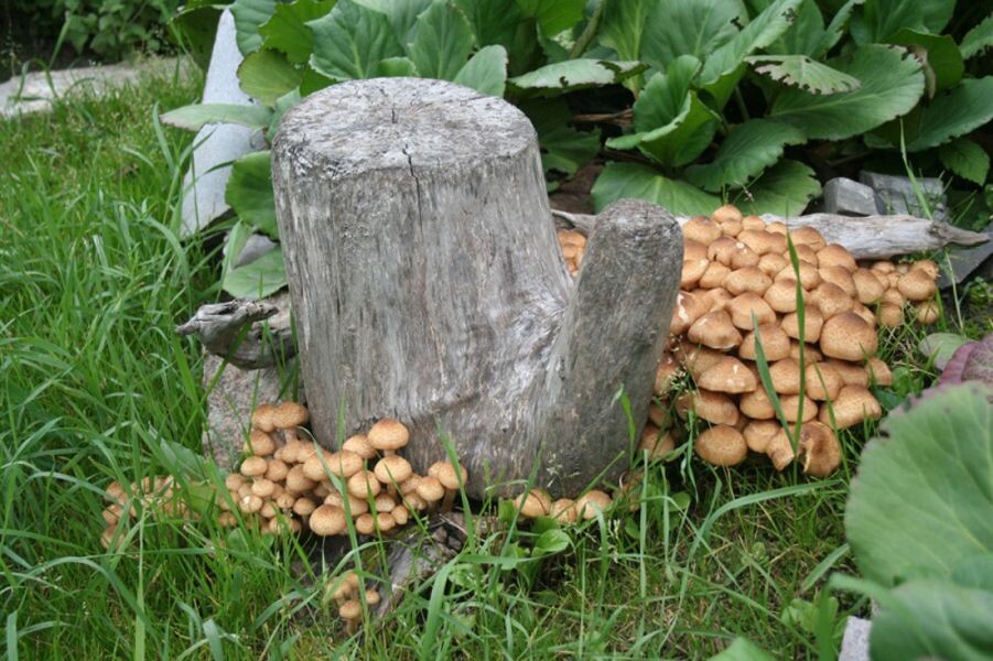 - Опята – быстро разрастаются на пнях и брёвнах.