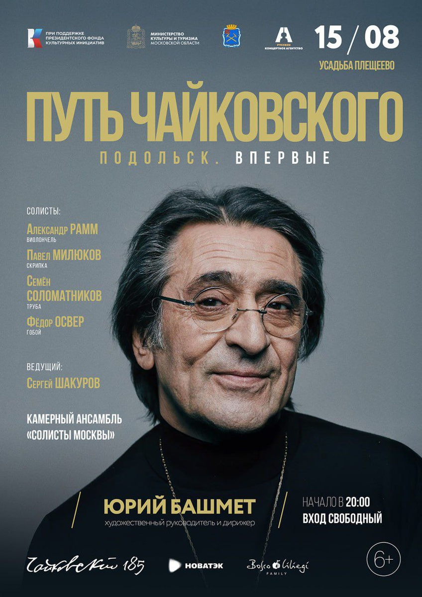 ✨ Гала-концерт проекта «Путь Чайковского» 🎶Уникальное музыкальное событие: народный артист Юрий Башмет организует первый концерт на территории родового поместья Петра Ильича Чайковского. 🎤Сольные партии гениального русского классика исполнят известные музыканты — лауреаты престижных премий. ☑️Ведущий концерта – Сергей Шакуров – прочтет отрывки из дневников П. И. Чайковского, в том числе о времени, проведенном композитором в усадьбе 🚫 Возраст: 0+ 📆 15.08.2025 🕒 20:00 🏢 Усадьба "Плещеево" 📍 г. Подольск, ул. Плещеевская, 53 💰 Вход свободный❗️ #webПодольск ⭐Разместить публикацию ⭐Поддержать канал голосом 💰 Стань курьером в Подольске – твой доход, твое время! ✅ Мероприятия Подольск https://dzen.ru/id/66ed500f7b5671493eca3fd6 http://vk.com/podolsk_events http://dzen.ru/podolsk_events