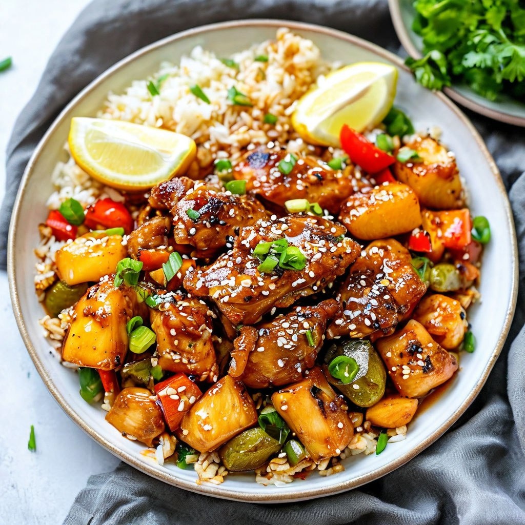 Курица в соусе Терияки с овощами и рисом Ингридиенты - Куриное филе — 500 г - Соус терияки — 100 мл - Соевый соус — 2 ст. ложки - Мед — 1 ст. ложка - Красный болгарский перец — 1 шт. - Зеленый болгарский перец — 1 шт. - Морковь — 1 шт. - Лук репчатый — 1 шт. - Чеснок — 2 зубчика - Имбирь свежий — 1 ч. ложка (тертый) - Растительное масло — 2 ст. ложки - Рис жасмин или басмати — 200 г - Вода для варки риса - Соль, перец по вкусу - Зеленый лук для украшения Способ приготовления 1. Нарежьте куриное филе кубиками среднего размера. 2. В миске смешайте соус терияки, соевый соус и мед. Добавьте курицу в эту смесь и оставьте мариноваться на 15-20 минут. 3. Пока курица маринуется, отварите рис в подсоленной воде до готовности. Слейте воду и отложите в сторону. 4. Нарежьте болгарский перец и морковь соломкой, лук полукольцами. 5. В сковороде разогрейте растительное масло и обжарьте имбирь и чеснок до аромата. 6. Добавьте курицу (вместе с маринадом) и обжаривайте до золотистой корочки. 7.