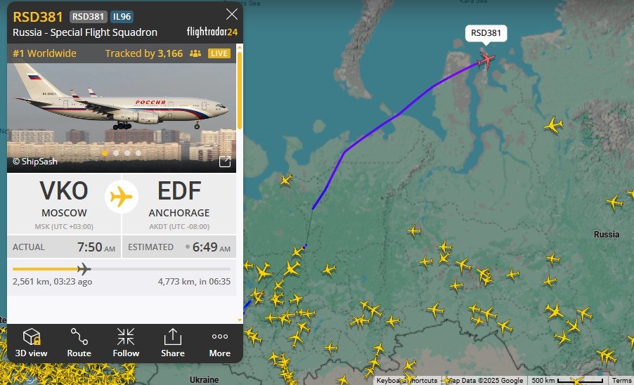 ❗️⚡️Передовая группа обеспечения завтрашнего визита Владимира Путина на Аляску на Ил-96-300 вылетела в американской Анкоридж