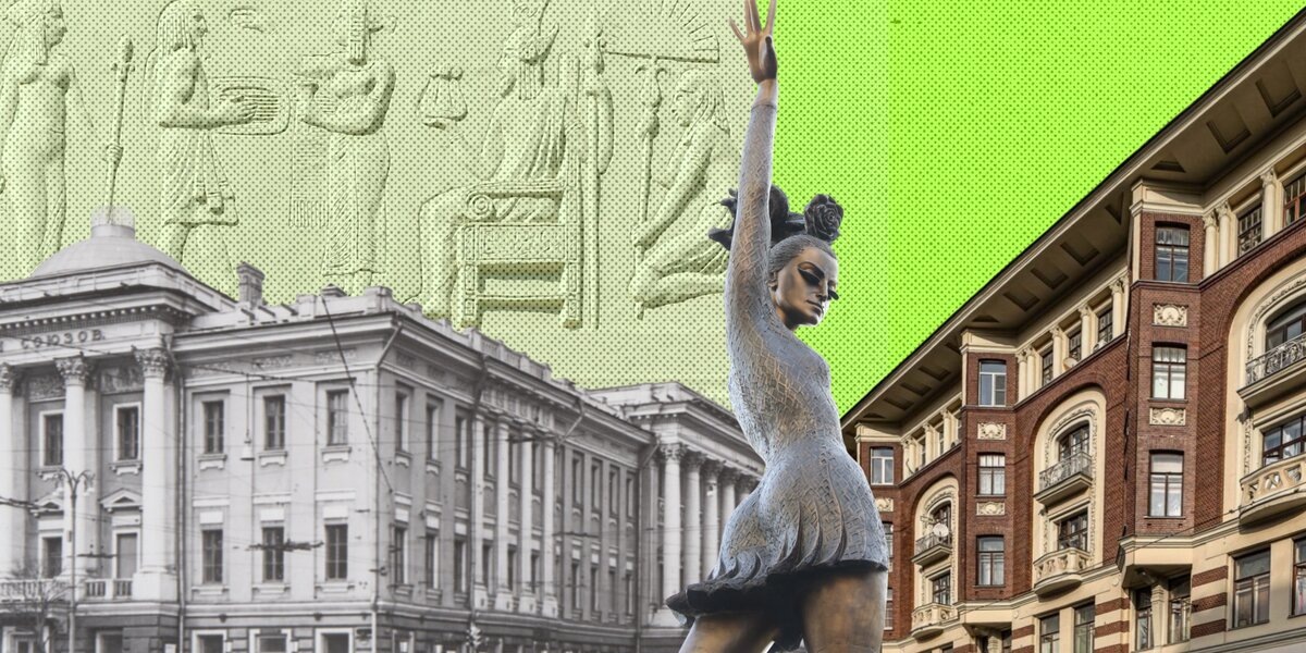 Если будете гулять по Большой Дмитровке — сделайте остановку в сквере Майи Плисецкой. Оттуда открывается отличная панорама на противоположную сторону, где во все своей архитектурной мощи (хотя некоторые с этим готовы спорить до хрипоты) предстает дом меховщика Михайлова, или Египетский дом. Появился он на месте бывшей усадьбы Муравьевых. К ее крепкому фундаменту достроили этажи — получился доходный дом в стиле модерн. Здание получило модную в то время керамическую облицовку и огромные стеклянные витрины для магазина мехов.