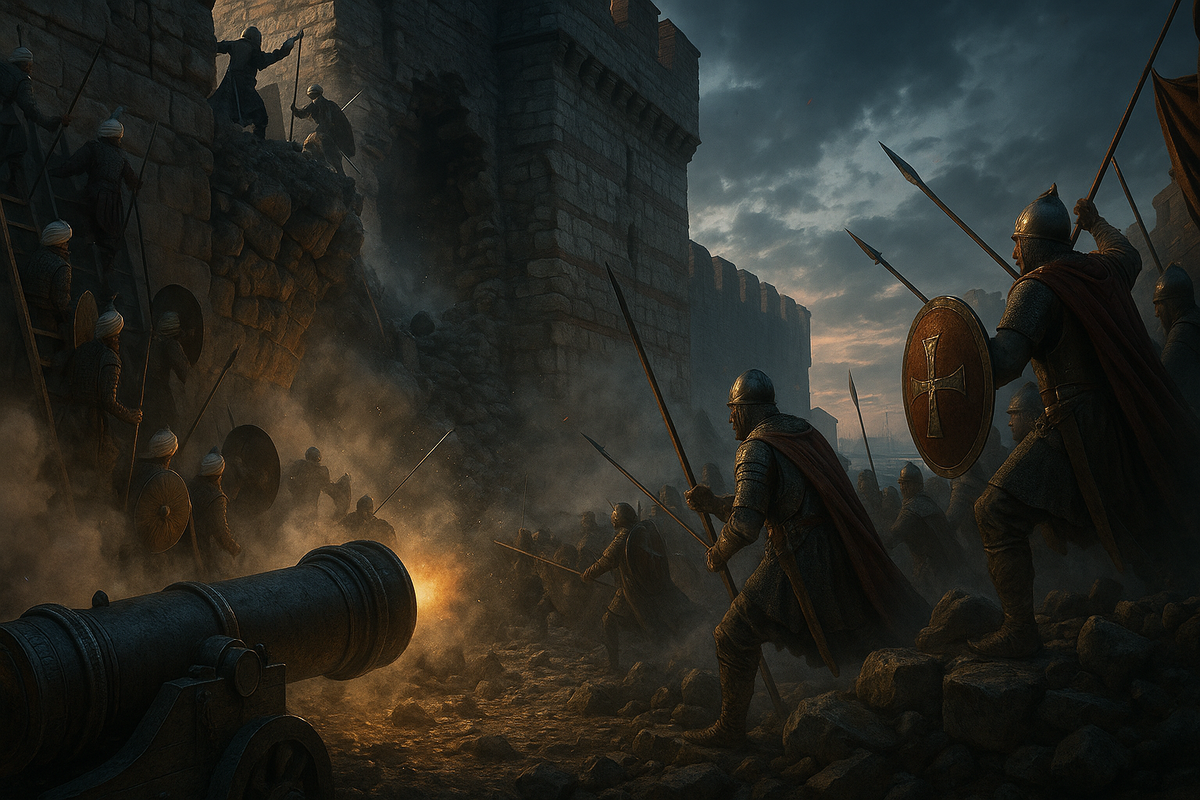 Последние десятилетия империи — это борьба за дыхание. Византия потеряла сельскую базу на Балканах, зависела от моря и итальянских купцов, воевала семьями и займами. Запад колебался: спасать «Восточный Рим» или сводить счёты и считать прибыли? Город выстоял против османских осад раньше — но теперь противник был иным: централизованным, мотивированным, с командиром, который умел считать время, деньги и кирпич.