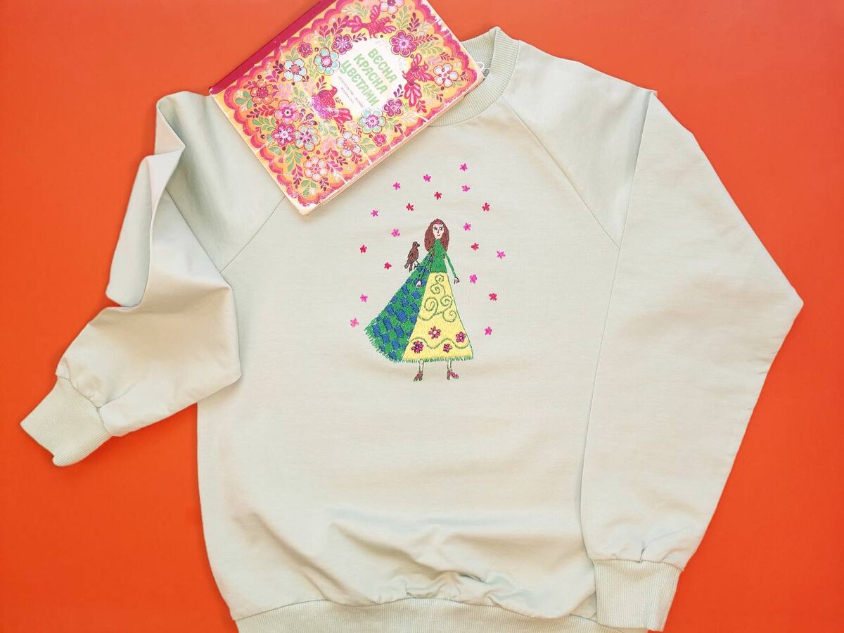 Вышивка рисунка на свитшоте - это самый долговечный подарок на текстиле