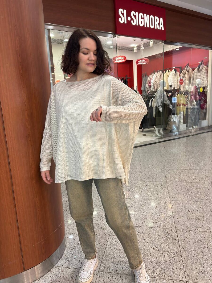 ▪️Комплект сетка + майка. Изделие прямого расслабленного силуэта с длинным рукавом и круглой горловиной. Изысканный вид придает ажурная фактура полотна ткани с золотым напылением. Размеры от 46 до 58 Цена 9.200₽ 💘Купить онлайн ТЦ Щука 💘Купить онлайн ТПУ Планерная