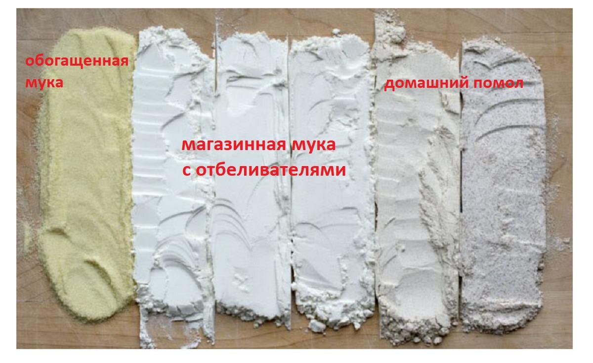 Это главный секрет западных мукомолов. Они давно поняли, что средний потребитель не понимает пользы натуральных продуктов, поэтому надо дать ему то, что он хочет — белоснежную и рассыпчатую муку. ✔️ Хорошая безопасная мука всегда сероватого цвет, и в ней точно будут мелкие комочки. ❌ А вот канцерогенная мука выглядит на порядок лучше - белоснежная, тончайшего помола — кажется, что это очень полезно. На самом деле это яд. На западе в муку добавляют броматы — соединения брома, которые придают муке белизну и не дают ей слеживаться. Именно они и вызывают рак. В России броматы запрещены, но если вы подумали, что мы в безопасности, спешу вас огорчить... Наши производители нашли разрешенные аналоги отравы. Опасные отбеливатели для муки Потребитель любит красивый продукт. Лучше продается белая мука, чем серая, поэтому производители и рады стараться. Хотите белую муку — нате, кушайте. А то, что здоровье потом просядет, так это еще доказать надо. В хорошей, безопасной и натуральной муке никогда