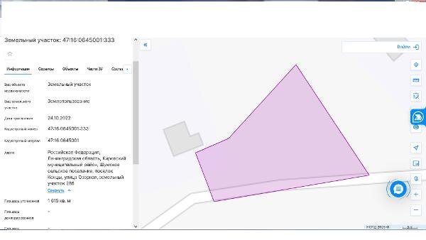 Название: площадь 1615 кв.м., кадастровый номер 47:16:0645001:333, разрешенное использование: для индивидуального жилищного строительства