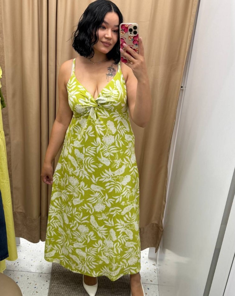 Это Диана — вы часто могли видеть ее в качестве plus-size модели в наших роликах! А это она на шопинге в Mark Formelle. Давайте поможем Диане выбрать наряд! 1. Платье на бретелях 2. Джемпер и джинсы 3. Платье в крупный цветочный принт 4. Желтое платье 5. Розовая футболка и джинсы 6. Льняной сарафан
