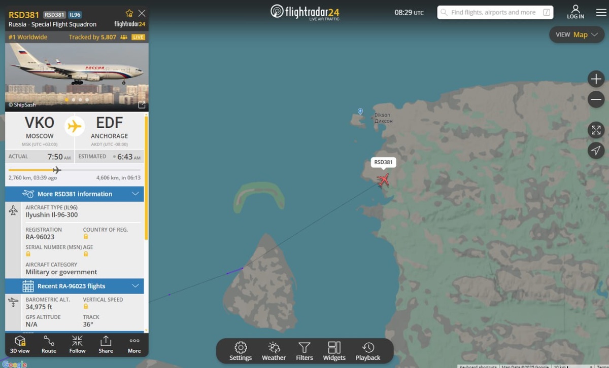 Первый самолет вылетел из России на Аляску: на его борту находятся люди, которые будут заниматься подготовкой встречи Путина и Трампа, пишут СМИ.