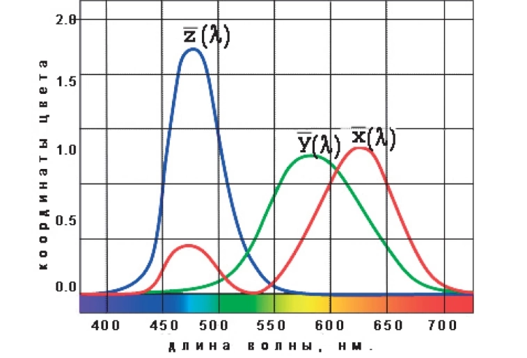 Они характеризуют восприятие глазом качества излучений основных цветов. Система CIE RGB имела недостатки: сложность расчетов и наличие отрицательных координат, что физически невозможно, так как отрицательной интенсивности света не существует.